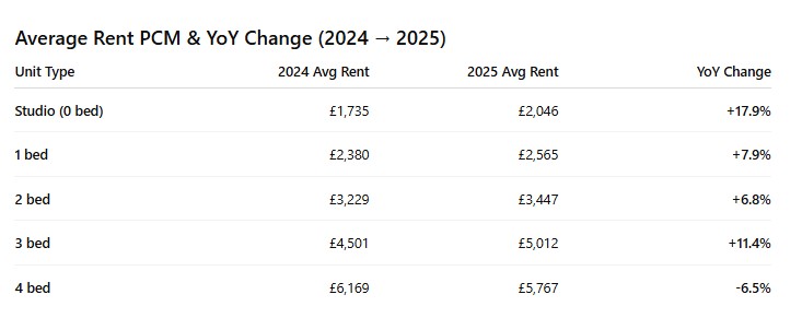 Rental values across Central London continue to reflect both strong demand and the premium placed on connectivity, lifestyle, and proximity to employment hubs.